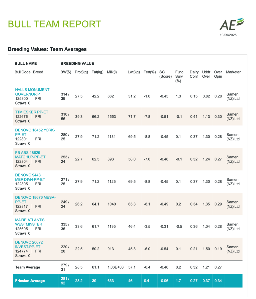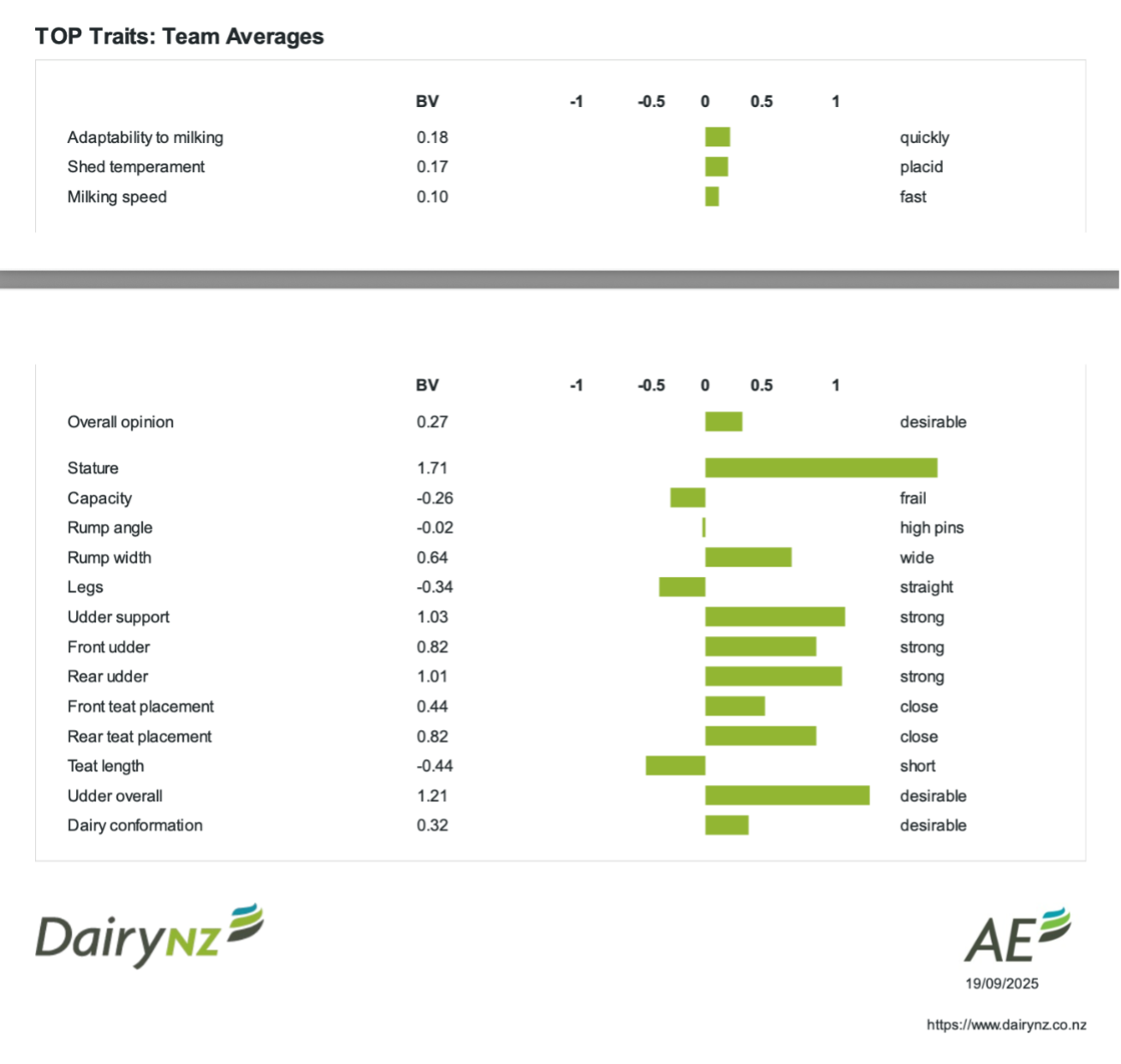 He ranks first on New Zealand’s latest Holstein Friesian Ranking of Active Sires (RAS) proof (19/09/2025), and boasts a Breeding Worth (BW) of 428 (with 92% reliability), placing him among the elite sires based on the national index. Backed by 404 New Zealand daughters across 51 herds, his proof is highly reliable with real-world performance.